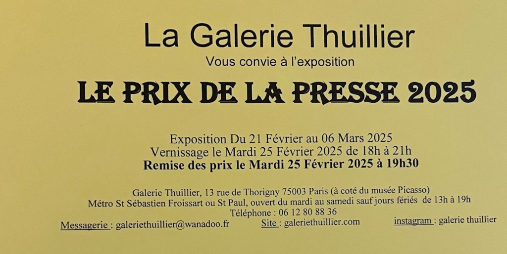 - Mars: Exposition collective -galerie Thuillier, Paris pour le prix de la presse 2025
