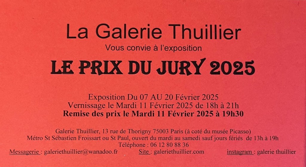 - Février: Exposition collective -galerie Thuillier, Paris, pour le prix de la presse 2025
