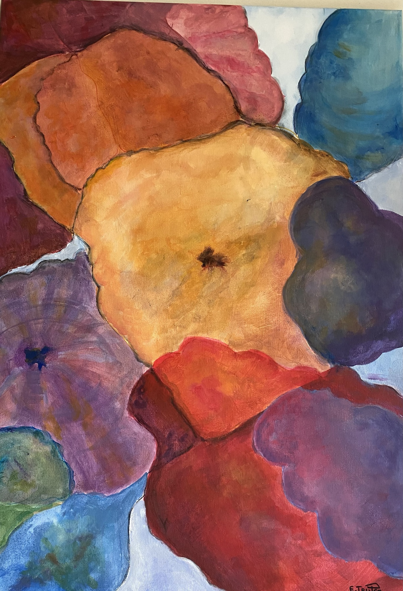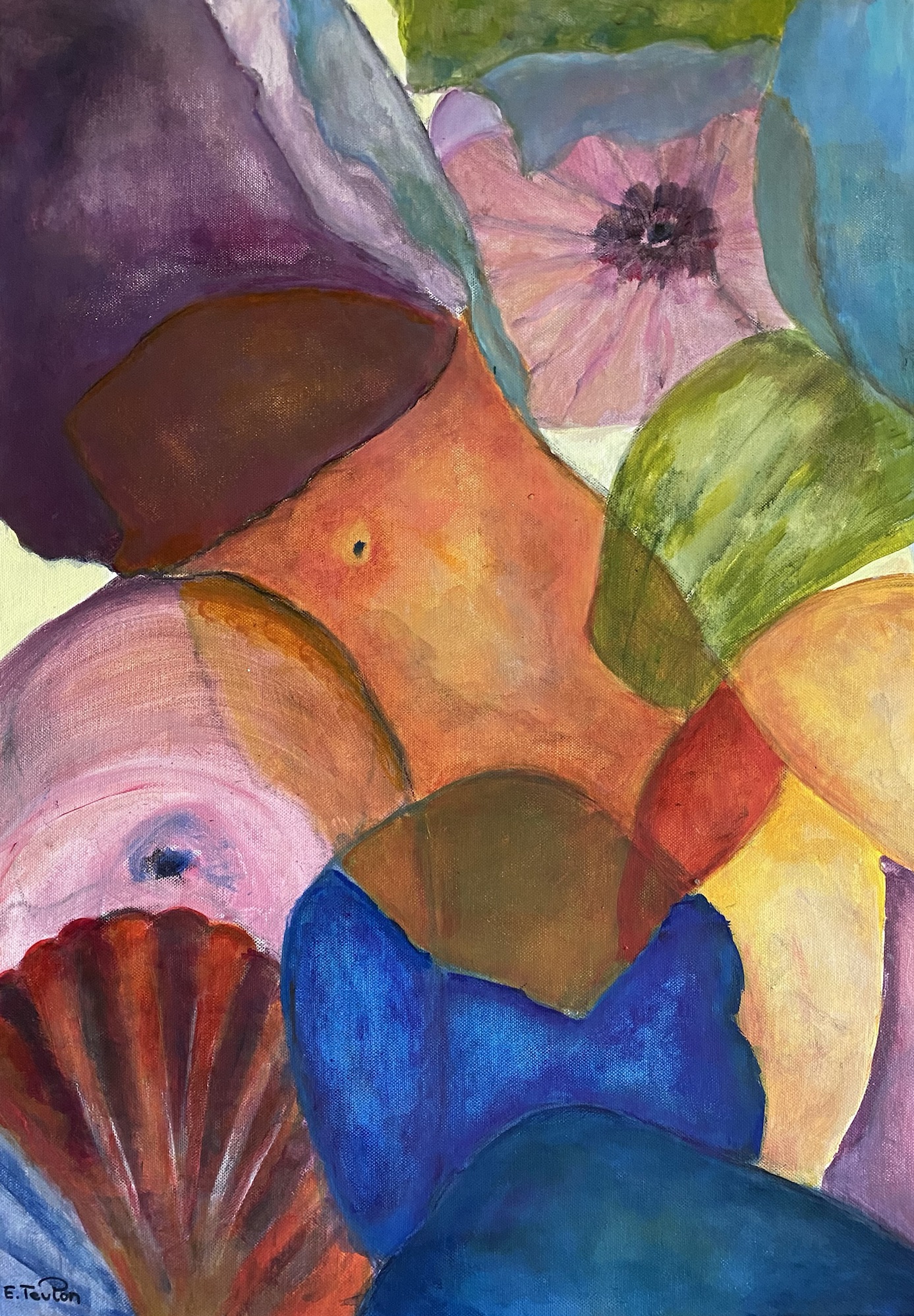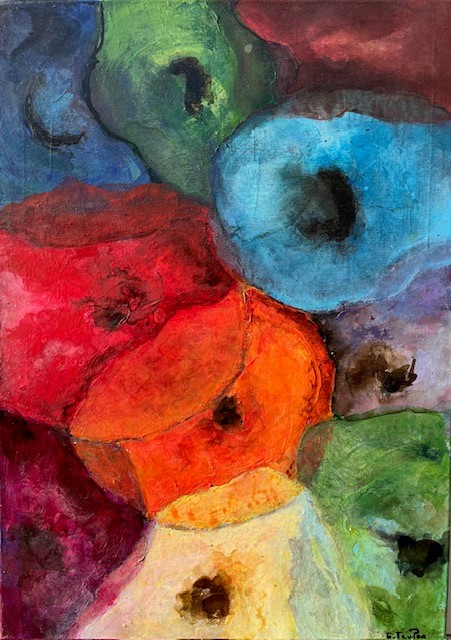 2023, Fleurs destructurées, Acrylique/encre sur toile 50X70 cm