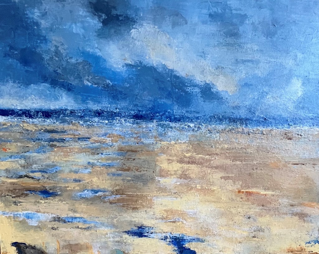 Plage Normande, 2025, Acrylique sur toile en lin, couteau, 65X54 cm