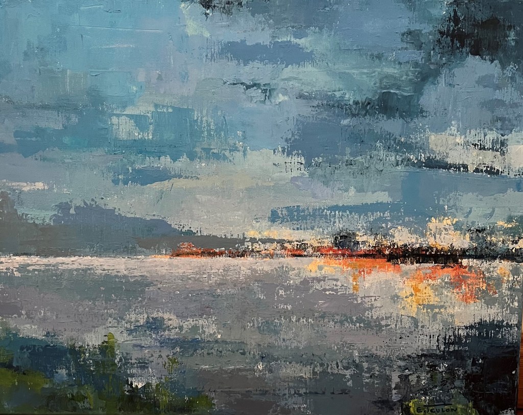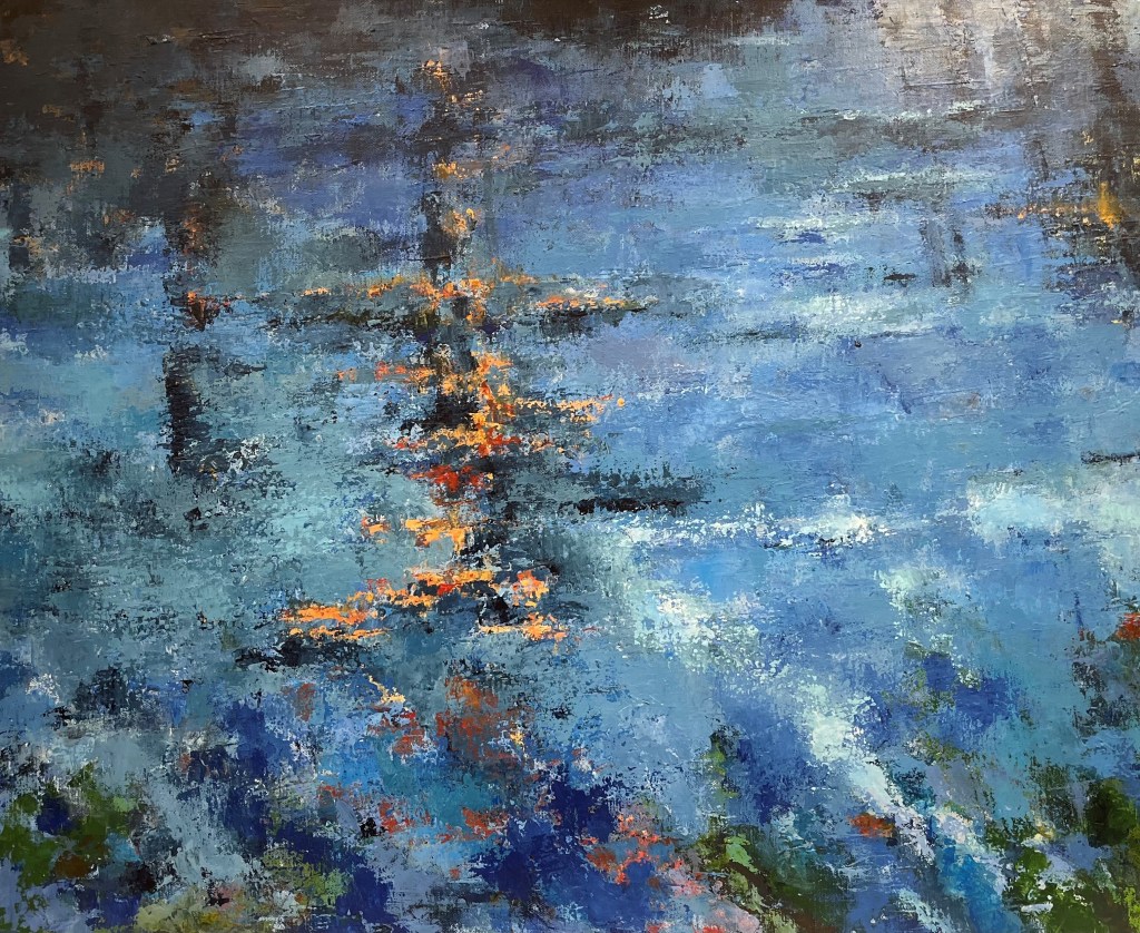 Etang Carnac, 2023, Acrylique sur toile au couteau, 40X50 cm